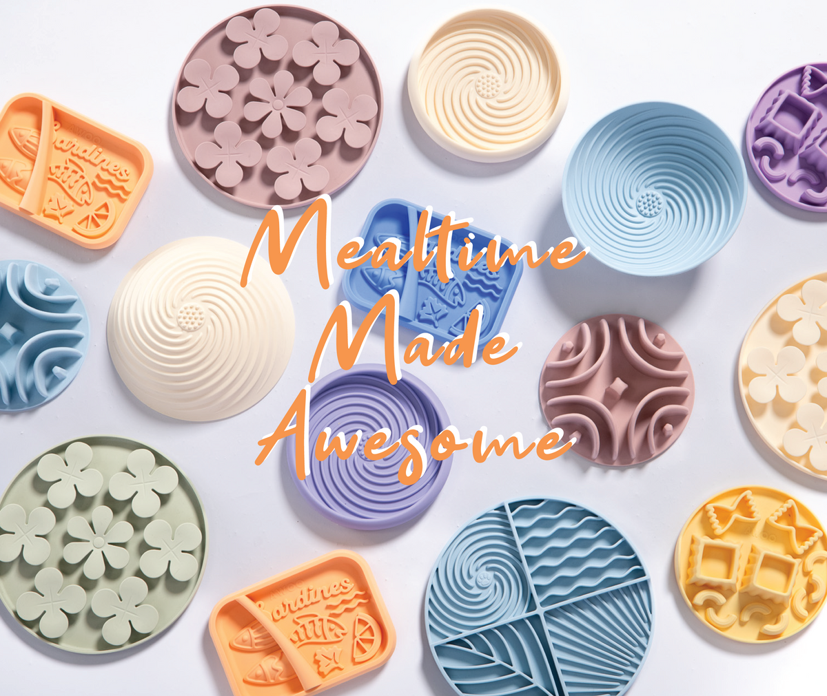 Slow down and savor every bite with the Sardina and Snackaroni Lick Mat and Slow Feeders.