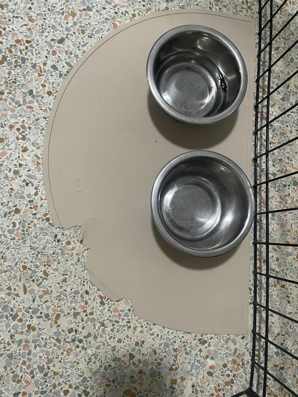 We offer two sizes to fit your space. The Small mat is 19" x 12" (great for single bowls or small dogs), and the Large mat is 23" x 15" (ideal for larger bowls or messy drinkers).